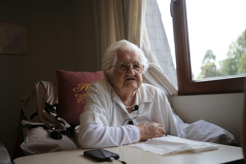 Araceli López González, una de las últimas voces del exilio español republicano en Chile, hablando durante una entrevista con EFE, en Temuco (Chile). EFE/ Javier Martín