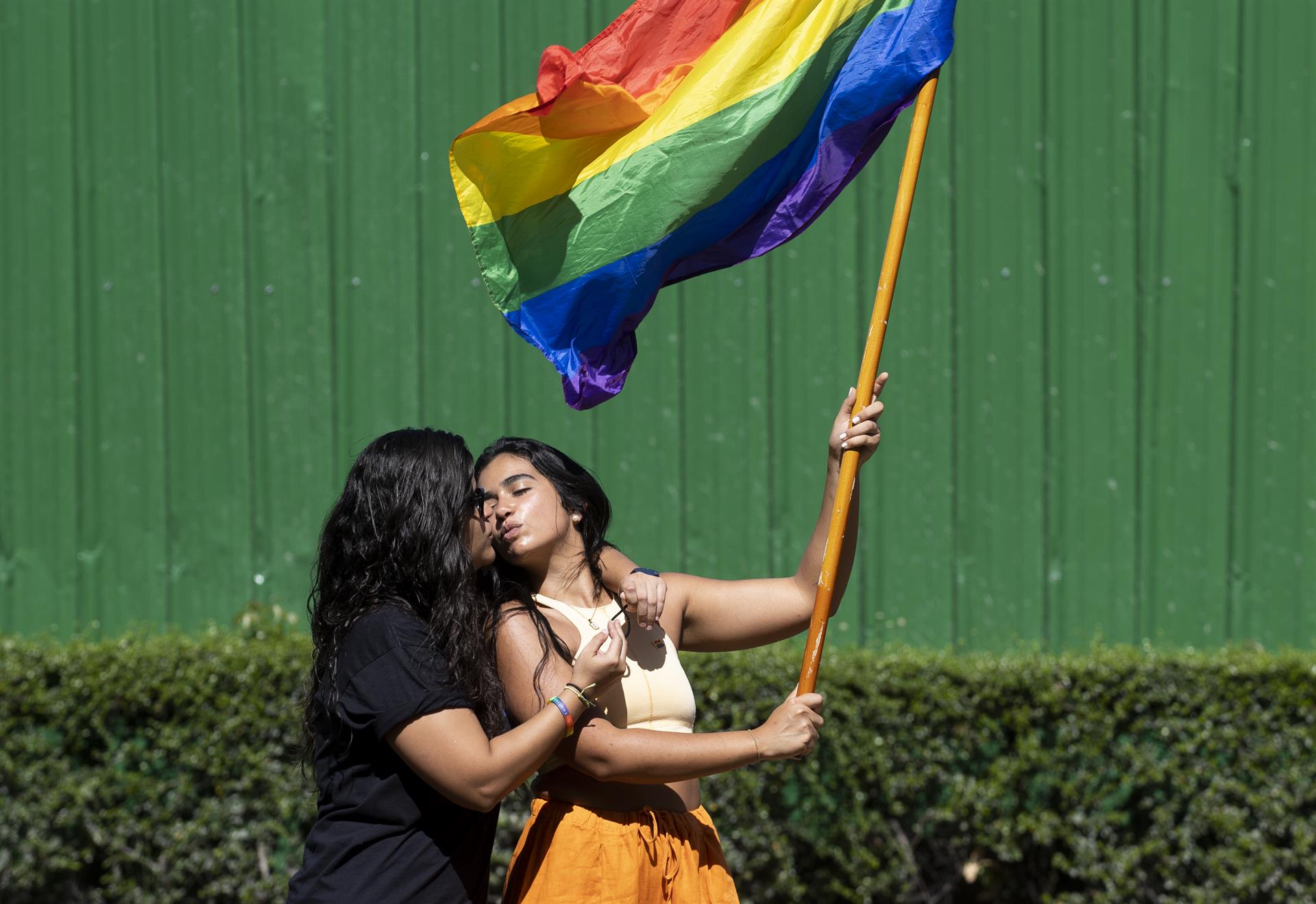 Una pareja se besa durante la marcha del Orgullo 2023 en Santo Domingo, República Dominicana. EFE/ Orlando Barría