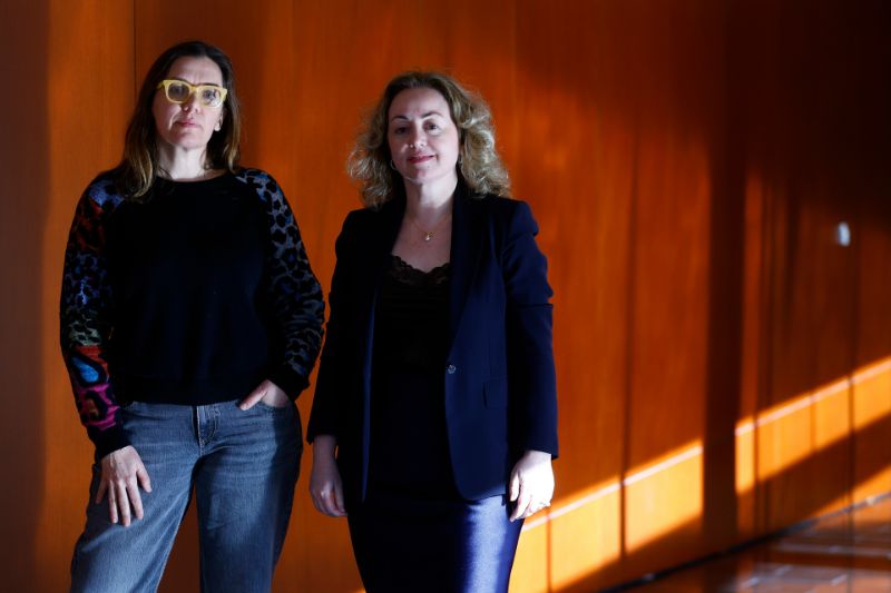 Las autoras del libro 'Feminismes interseccionals', Alícia Villar (i), doctora y profesora de Sociología en la Universitat de València (UV), y Vicenta Tasa (d), doctora y profesora de Derecho Constitucional en la UV, durante una entrevista con EFE. EFE/Quique García