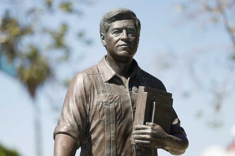 Una estatua de César Chávez en el Parque Memorial César E. Chávez en el barrio de San Fernando de Los Ángeles, California, EE. UU.. EFE/EPA/CHRIS TORRES