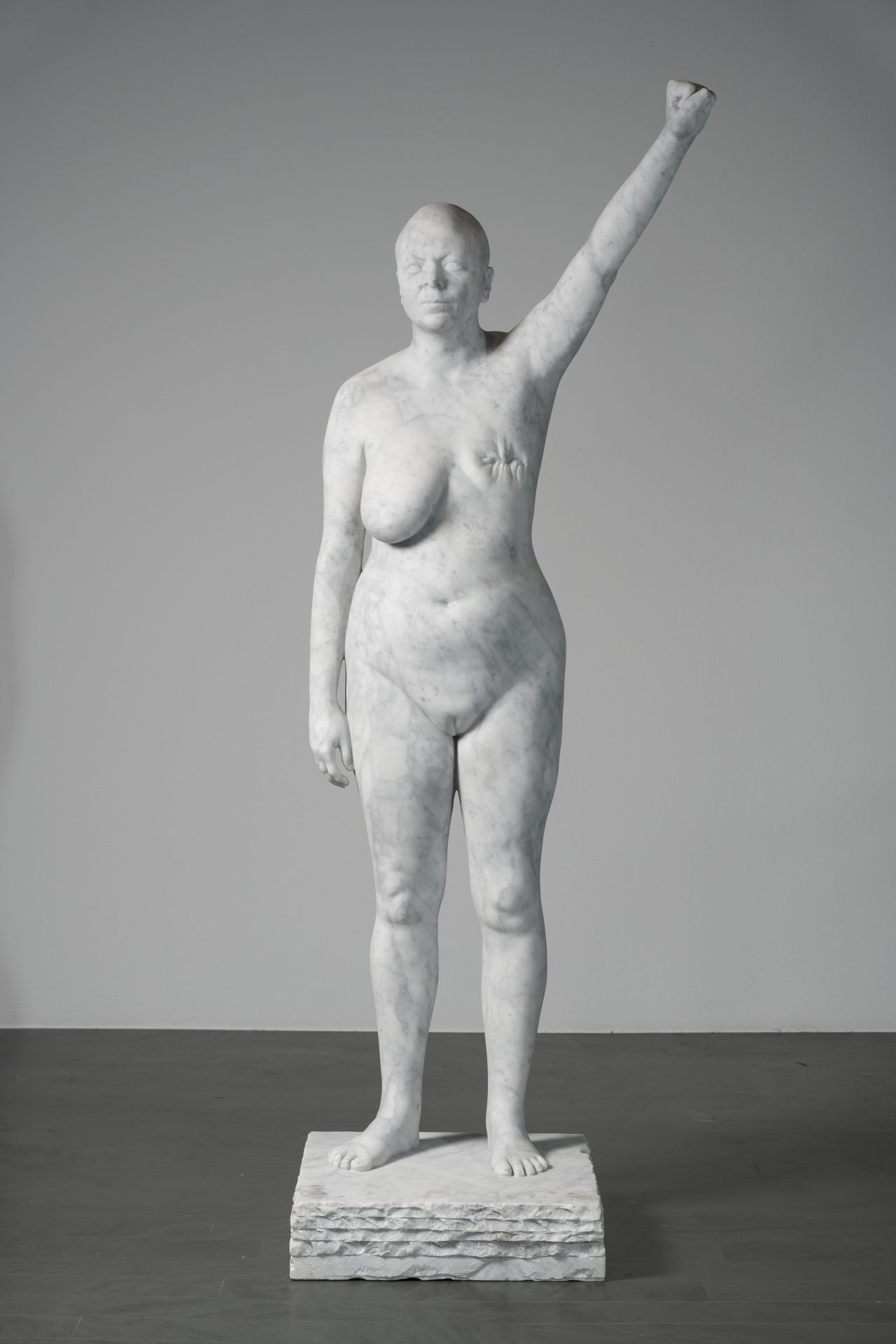 Vargas (Granada, 1980) lleva una escultura monumental hecha en mármol de Carrara, que representa su cuerpo desnudo a tamaño natural, que escaneó tras un cáncer de mama por el que le tuvieron que realizar una mastectomía. Con el brazo levantado y el puño en alto, a modo de lucha y esperanza, la escultura es una huella de cómo estaba su cuerpo en ese momento y un homenaje a todas las mujeres que han pasado por esta enfermedad.